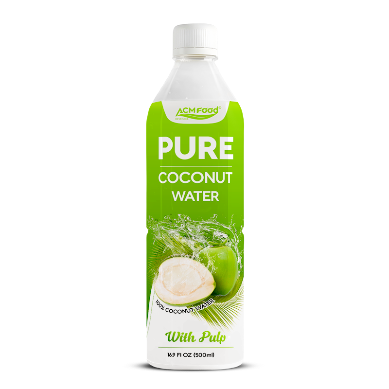 ACM Pure Coconut Water With Pulp – 500ml PET Bottle is produced from fresh young coconuts using NFC (Not From Concentrate) technology to preserve its natural flavor and essential nutrients.